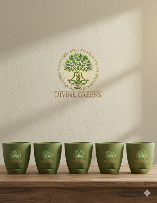set of 5 pots- 4 inch size self watering pot-olive colour